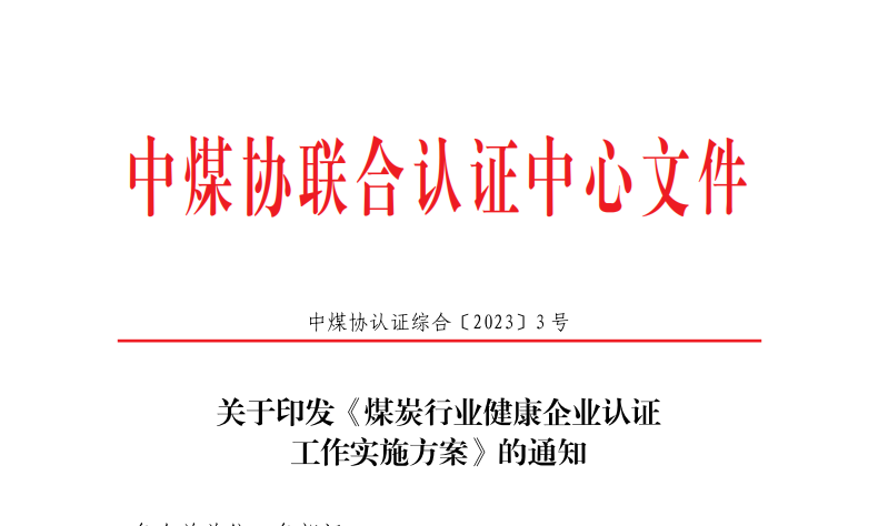 為貫徹落實(shí)《“健康中國(guó) 2030”規(guī)劃綱要》《關(guān)于實(shí)施健康中國(guó)行動(dòng)的意見》《健康中國(guó)行動(dòng) (2019-2030年)》精神和國(guó)家衛(wèi)生健康、認(rèn)證認(rèn)可政府主管部門相關(guān)要求,根據(jù)《中國(guó)煤炭工業(yè)協(xié)會(huì)關(guān)于組織開展煤炭行業(yè)健康企業(yè)認(rèn)證工作的通知》(中煤協(xié)會(huì)科技 [2023]...