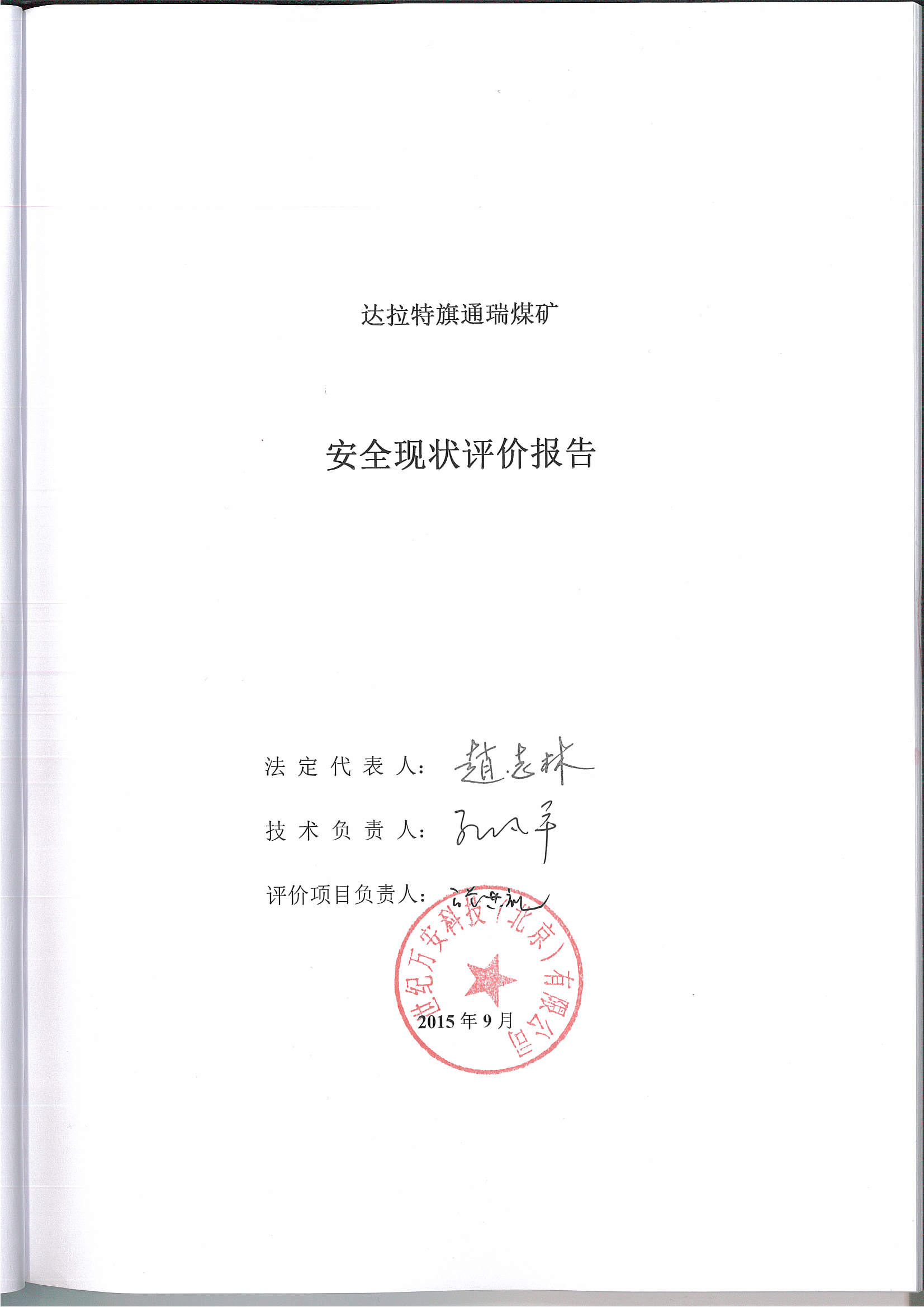 [2015年三季度]達(dá)拉特旗通瑞煤礦安全現(xiàn)狀評價(jià)報(bào)告_頁面_1