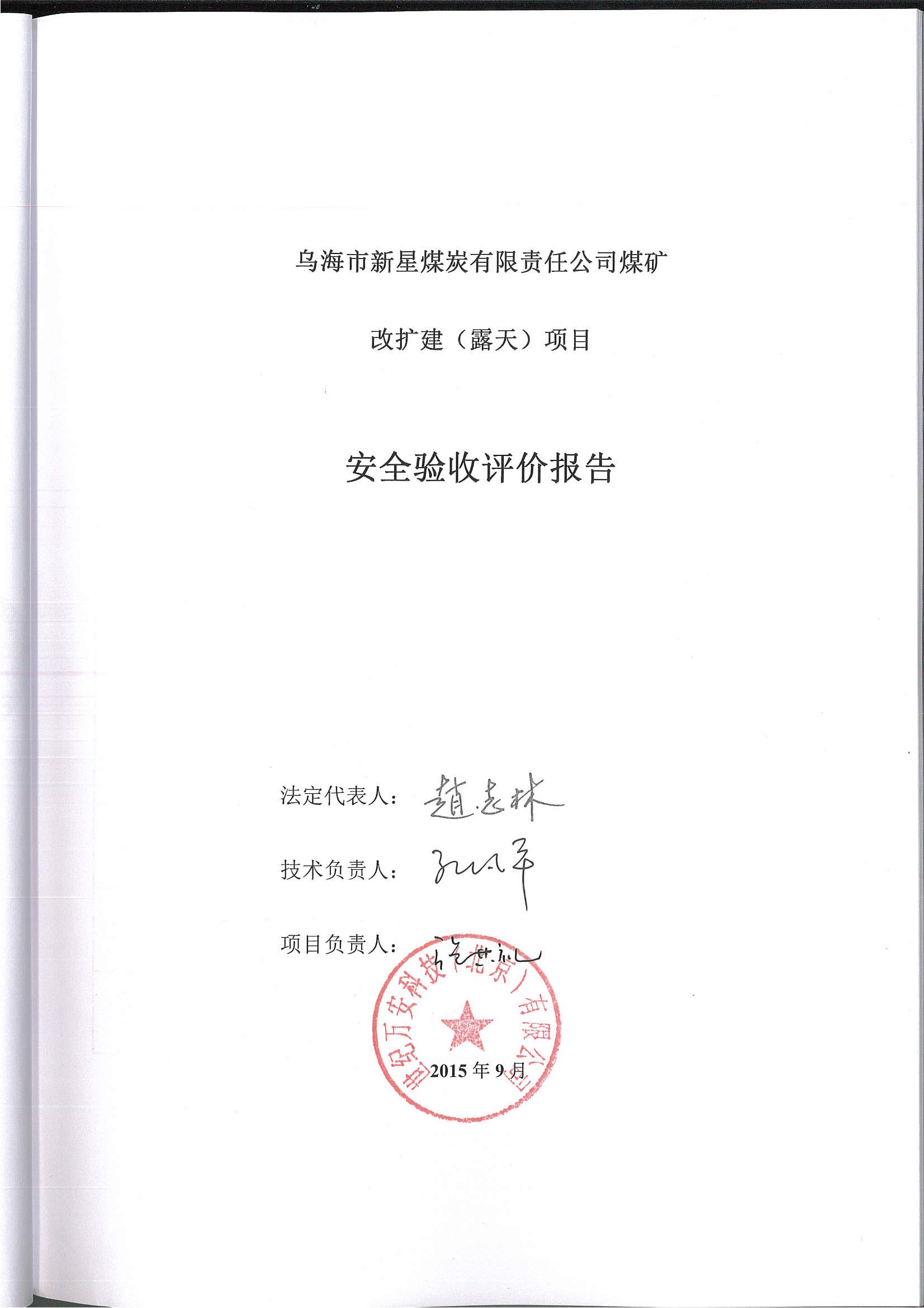 [2015年三季度]烏海市新星煤炭有限責(zé)任公司煤礦改擴(kuò)建(露天)項(xiàng)目安全驗(yàn)收評價(jià)報(bào)告_頁面_1